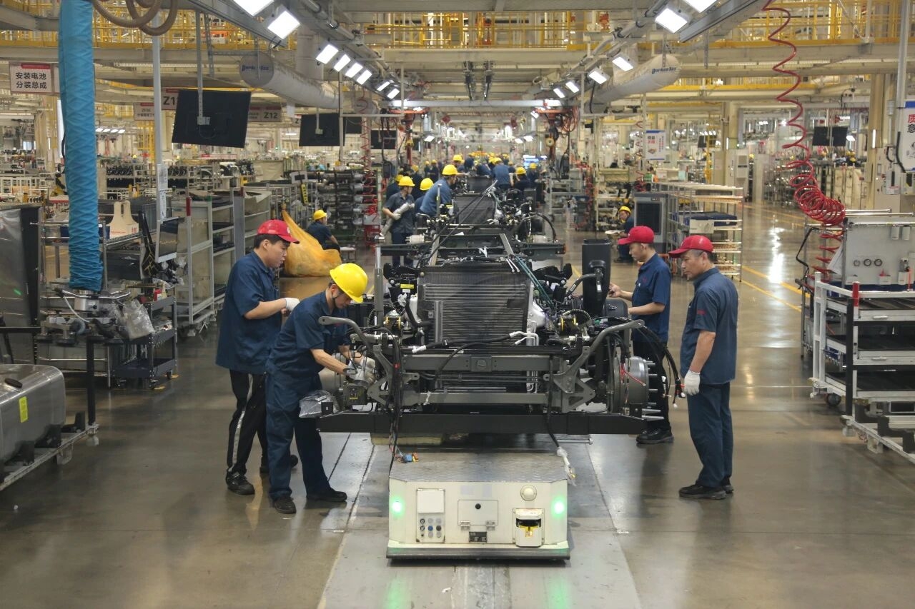 ??? 黨家莊工廠對新能源重卡推行電池模塊化分裝,提升裝車效率與裝配精度。