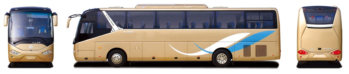 | Sièges | Sièges aérodynamiques de luxe ZTZY3210 Zhongtong (accoudoirs et dossiers réglables); siège conducteur ZTZY1050; 49+1+1 | Ceinture de sécurité pour chaque siège; fonction de déplacement latéral et pédale; siège du guide touristique ZTZY2020; siège conducteur ZTZY1052 avec airbag | |||