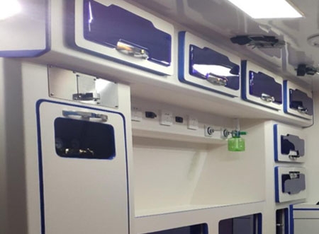 La cabine médicale de l’ambulance est équipée darmoires de rangement visuelles multifonctionnelles fabriquées à partir de matériaux étanches, ignifuges et résistants à la corrosion. Ces armoires sont utilisées pour stocker du matériel médical et des médicaments. Grace à la conception visuelle des armoires, nous assurons une visibilité pratique, ce qui permet de gagner du temps.