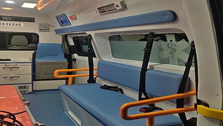 Des bancs sont placés autour des brancards médicaux. Ils sont fabriqués en cuir et éponge, ce qui assure un grand confort lorsque vous êtes assis dessus. Ladoption de la ceinture de sécurité à trois points offre une grande protection du personnel médical et des patients.
