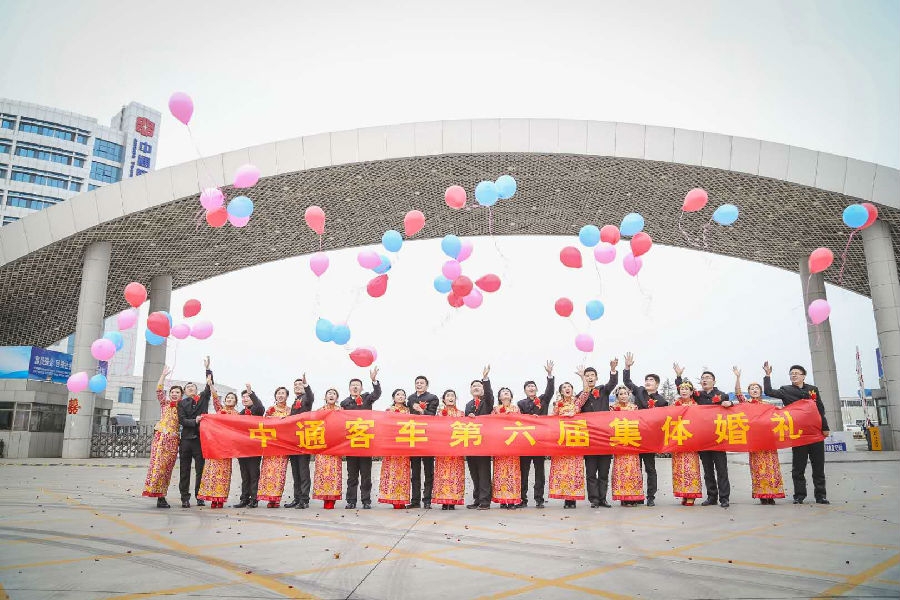 鵲上枝頭春意鬧,燕飛心懷伊人來。時(shí)間飛逝,一年一度的集體婚禮于2018年1月2日如期而至,中通客車第六屆集體婚禮隆重舉行。中通客車董事長李樹朋、總經(jīng)理孫慶民攜公司領(lǐng)導(dǎo)班子成員參加活動(dòng),山東省交通廳的高洪濤廳長、青島公交董事長趙海濱先生及公司領(lǐng)導(dǎo)班子、萊蕪長運(yùn)副總經(jīng)理尚念進(jìn)先生也來到現(xiàn)場(chǎng),為集體婚禮和11對(duì)新人帶來了祝福。