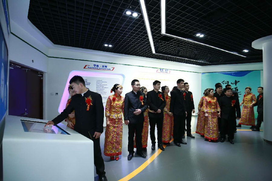 2018年正值中通集團(tuán)成立60周年,巡游活動(dòng)伊始,11對(duì)新人在公司門口放飛60個(gè)氣球,以牢記公司一甲子發(fā)展歷程,祈福中通有更廣闊的明天。為了深入了解企業(yè)文化,新人在工作人員的帶領(lǐng)下攜手參觀公司辦公樓和榮譽(yù)展廳,進(jìn)一步了解中通的昨天和今天。公司大槐樹見證了近50對(duì)新人的愛情,本屆集體婚禮也不例外,11對(duì)新人在大槐樹下許愿祈福,一同鎖下代表忠貞愛情的同心鎖。