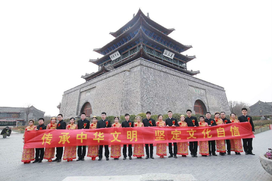 1月2日下午,11對(duì)新人乘坐中通人自己裝扮的溫馨喜慶的婚車在聊城市區(qū)巡游,把婚禮的喜悅分享給市民。在水上古城的活動(dòng)中,11對(duì)新人首次參觀婚俗文化博物館,了解中華傳統(tǒng)的婚俗文化,將中華文明傳承和發(fā)揚(yáng);光岳樓下在廣大游客的見證和祝福下新人們?cè)S下愛情的誓言,互許終身